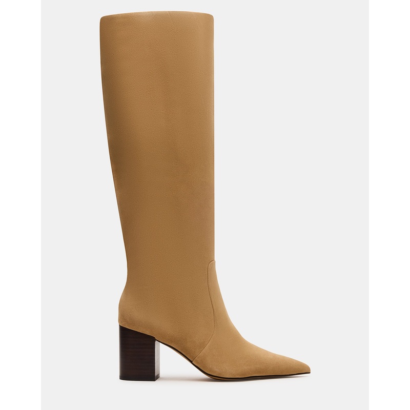 Elevate your style with the SKYLINE knee-high boots. These boots feature a sleek pointed-toe design and a sturdy block heel, providing both fashion and comfort. Made with high-quality materials, they are sure to be a staple in your wardrobe for years to co