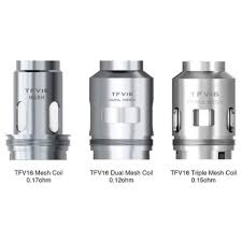 SMOK TFV16 REPLACEMENT COIL The SMOK TFV16 Replacement Coil has three Coil types for you to choose. They are Mesh Coil 0.17ohm, Dual Mesh Coil 0.12ohm, Triple Mesh Coil 0.15ohm. The TFV16Replacement Coil is designed for the powerful TFV16 tanks.As you know