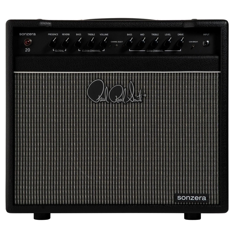 The Sonzera 20 is a moderately powered 20-watt combo amplifier with two independently controlled, footswitchable channels designed for maximum versatility. The clean channel delivers full, 3D tones reminiscent of American mid-1960s amplifiers. The gain channel is related to the clean channel circuit-wise, so that it can be set up to act as a boosted clean channel or manipulated to make the channels sound like two completely different amps (the gain channel can be set from slight to very heavy distortion by simply using the drive and level controls). The bright switch on the gain channel has been carefully tailored to deliver familiar high-end snap and is particularly effective on the low strings, neck pickup settings, and with singlecoils, while the low-end response of the gain channel is full, tight, and clear.