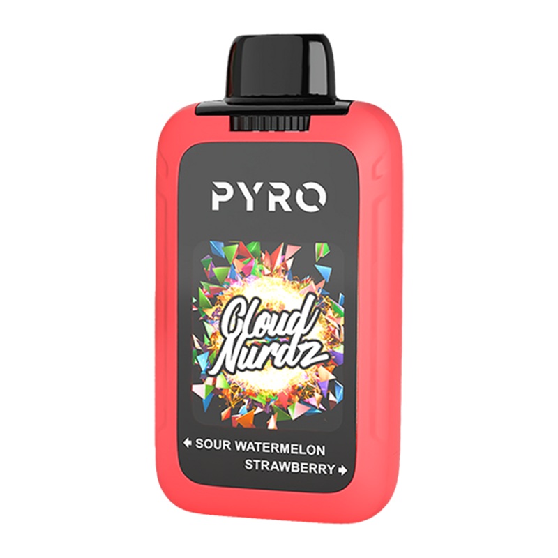 Cloud Nurdz X Pyro Duo Disposable Vape Flavor: The newest Cloud Nurdz Pyro Duo disposable features dual tanks and two flavors: sour watermelon and strawberry. Enjoy two Cloud Nurdz salts flavors in one compact disposable vape. Capacity: 24ml (12ml of each