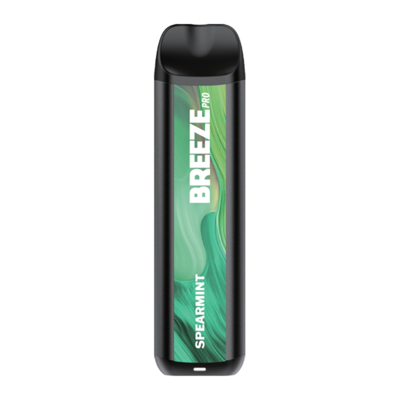 BREEZE PRO DISPOSABLE VAPE Flavor: The Spearmint Breeze Pro is available at Vaping.com and features an adult-friendly, chewing gum inspired flavor. Puff Count: 2000 E-Liquid Capacity: 6ml Nicotine Strength: 50mg Battery Capacity: 1000mAh Adjustable Airflow