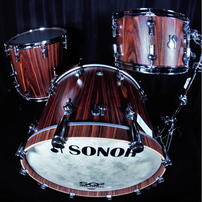 Maple shells. Finish: Rosewood Alpi veneer finish. Sizes: Kick: 22" x 16" Medium Weight Floor Tom: 16" x 15" Thin Weight Rack Tom: 12" x 8" Thin Weight. Rack Tom Stand Not Included. Dave's Drum Depot Photos are of the actual drum set. We assemble and tune