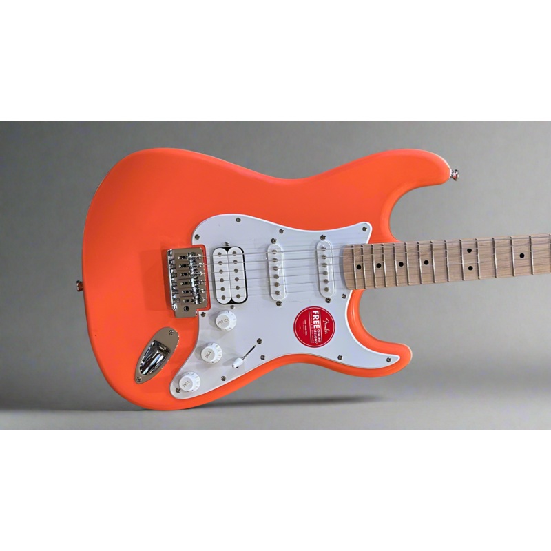 - Squier humbucking bridge pickup, single-coil neck and middle pickups (HSS)