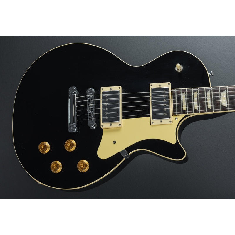 Very Good Condition Ebony, Gloss nitrocellulose lacquer finish, Curly Maple top on a Mahogany body, Cream binding, Standard C shaped Mahogany neck, Bound 12 radius Rosewood fingerboard with the acrylic trapezoid inlays and medium jumbo frets, 24.75" scale