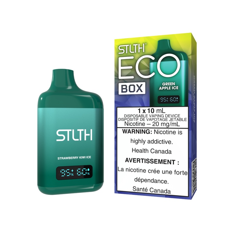Flavour Notes: Green Apple Ice The STLTH ECO BOX is designed for those who value convenience, quality, and style in a compact format. With a 10 mL e-Liquid capacity and a sleek metal shell, this device delivers a flavourful experience while remaining easy
