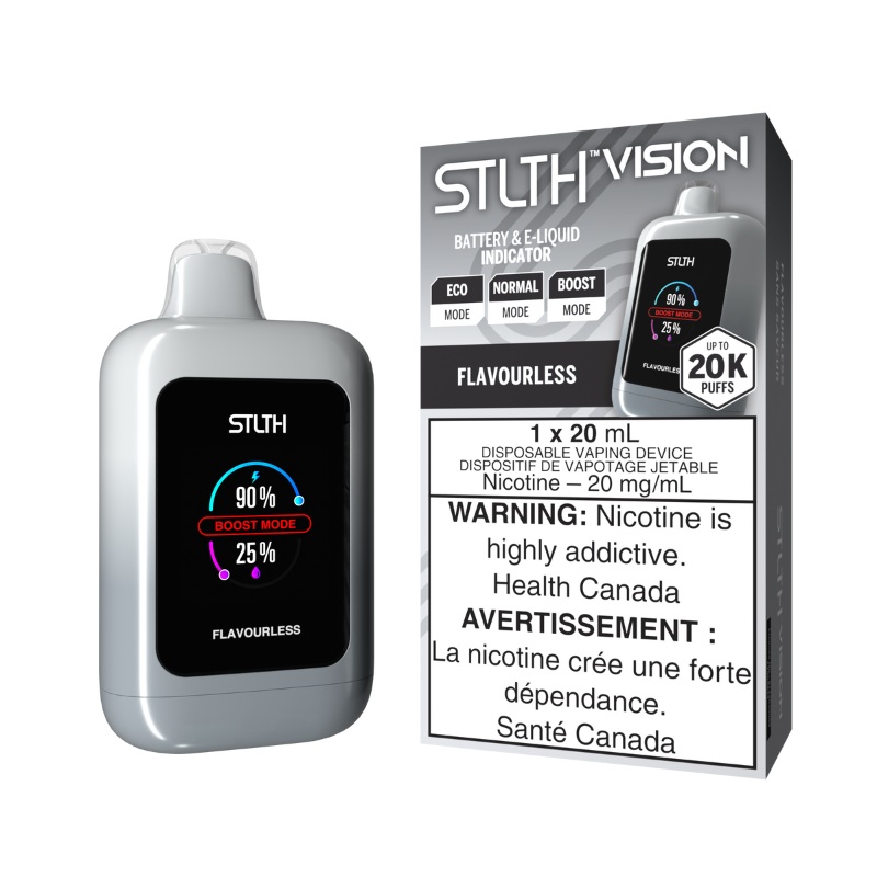 Flavourless Stlth Vision Disposable Vape - 20,000 Puffs Embrace the simplicity of FLAVOURLESS, and enjoy smooth, unadulterated satisfaction with every puff. Presenting the STLTH VISION Disposable Vape, a true game-changer in the world of disposables. Its s