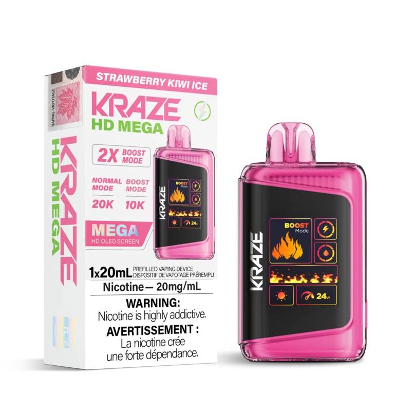 FLAVOR PROFILE Strawberry Kiwi Ice KRAZE HD MEGA 20000 Puff Disposable Vape KRAZE 20K Disposable Vape. Get ready to go krazy with Kraze! We're thrilled to announce the upcoming arrival of theKraze HD Mega- Featuring ultra-sweet fruit flavours + many more a