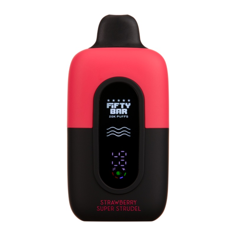 FIFTY BAR DISPOSABLE VAPE (BLACK SERIES) Flavor: Get ready for another super flavor from the American master formulators at Fifty Bar. The Strawberry Super Strudel Black Series disposable vape melds ripe strawberry and pastry flavors into a perfect all-day
