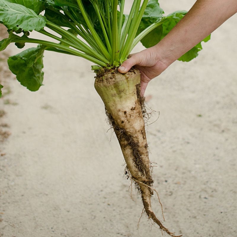 These large gangly roots produce a natural source of sugar. Sugar Beet roots are very sweet and can be used fresh to add sweetness to dishes. With some research in processing and recipes, they can be made into sugar, syrup, molasses, and wine. The Sugar Be