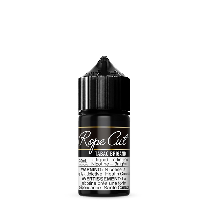 TABAC BRIGAND 30ML BY ROPE CUT EN: A bold tobacco flavour, lightly smoked, with a certain level of sweetness giving a feeling that ressembles cocoa. FR: Un tabac moyennement cors, lgrement fum et sucr avec des notes qui peuvent se rapprocher un got de caca