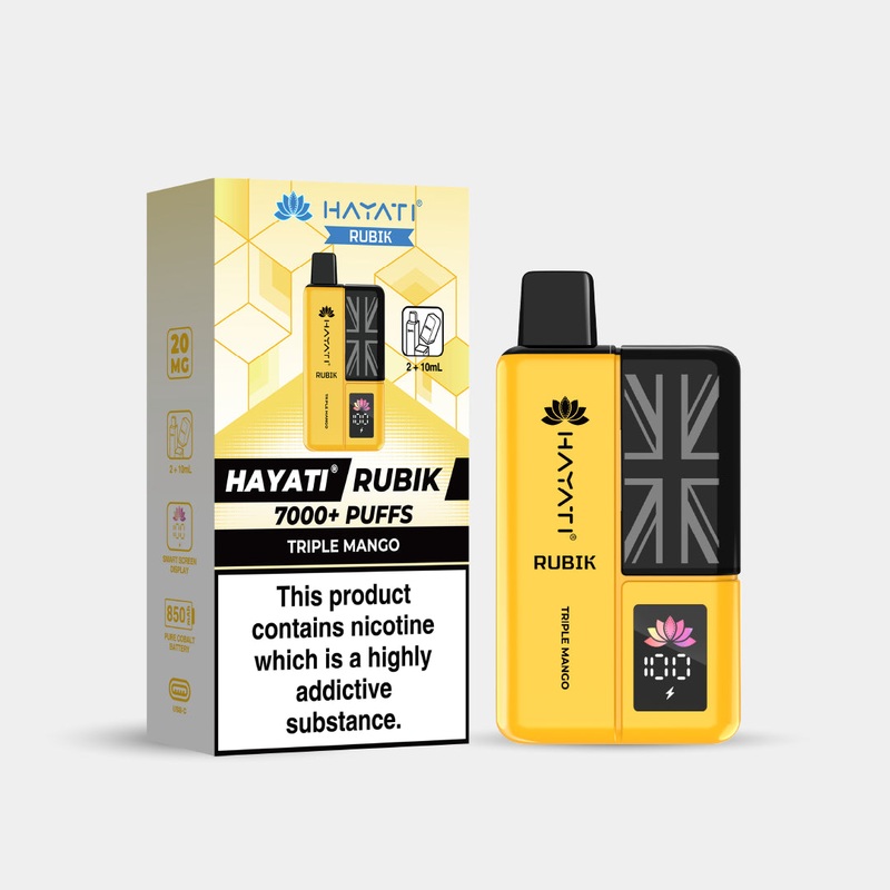 Hayati Rubik Triple Mango offers a trio of rich and ripe mangoes for an intensely tropical taste. Offering up to 7000+ puffs with smoother airflow and long-lasting flavour, it features an improved e-liquid delivery system with double cotton wicking for enh