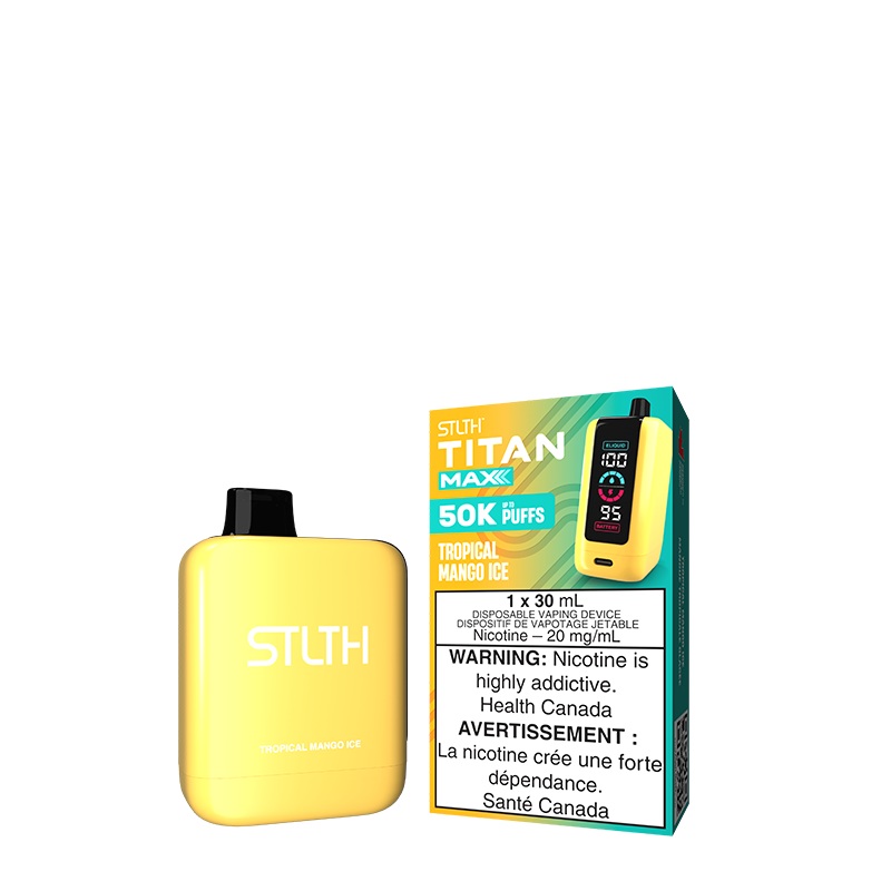 TROPICAL MANGO ICE STLTH TITAN MAX DISPOSABLE (CARTON OF 4 UNITS) Sweet, juicy, tropical mangoes paired with an icy finish, providing an exotic fruity sensation and a cool refreshing breeze. ______ STLTH TITAN MAX - WITH MEGA SCREEN 1 carton contains 4Disp