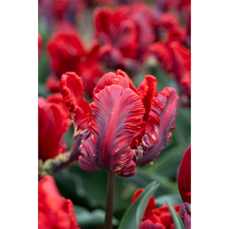 Une des varits ayant remport des prix, cette varit rvle de grands ptales carmin avec des tincelles feu au bord ainsi que des reflets tirant sur le violet profond, voire le noir. Laisse en terre, elle a une ouverture sans pareil s’aplatissent compltement pour rvler toutes les nuances incroyables de ses ptales.