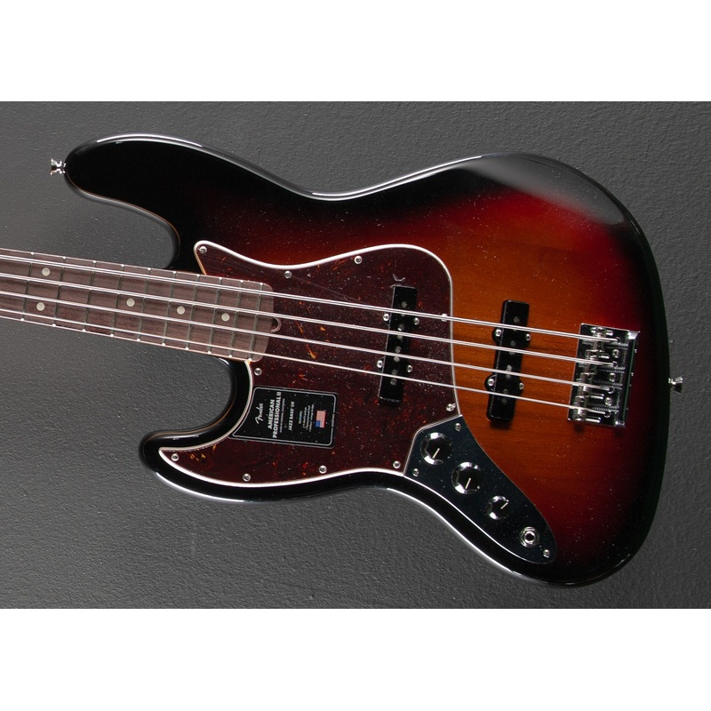 3 Color Sunburst,Gloss Urethane body finish, Alder body, Slim C shaped Maple neck with a 9.5 radius Rosewood fingerboard and narrow tall frets, 34 scale length, 1.5 nut width, Fender V-Mod II single coil Jazz Bass bridge and neck pickups with the volume/vo