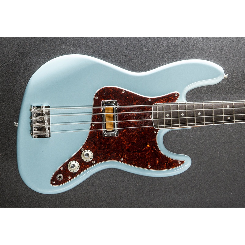 Sonic Blue with the matching headstock, Made in Mexico, Alder body, Gloss polyester body finish, 60's C shaped Maple neck, Bound 9.5" radius Ebony fingerboard with the white pearloid dot inlays and medium jumbo frets, 34" scale length, 1.5" nut width, Fend