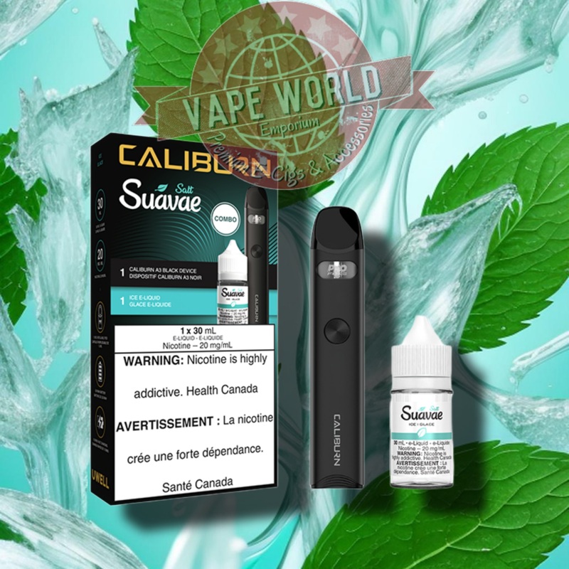 Introducing the UWELL CALIBURN A3 POD KIT AND SALT E-LIQUID BUNDLE! Elevate your vaping experience with this exclusive package featuring the sleek UWELL CALIBURN A3 POD KIT [CRC] in Black, paired with your choice of tantalizing 30ML Salt Nicotine E-liquids from BANANA BANG SALT, KAPOW SALT, and SUAVAE!