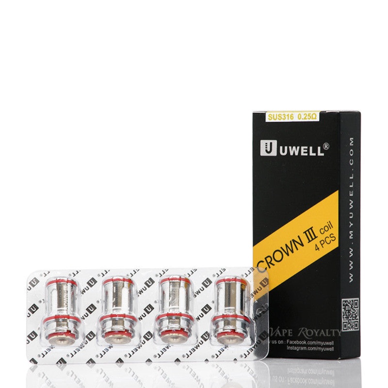 For the Crown 1 Coils, we carry them in: Coil Specifications: 0.25 ohm Dual Stainless Steel Uwell Crown Sub-Ohm Coil - 80 to 120W 0.5 ohm Dual Stainless Steel Uwell Crown Sub-Ohm Coil - 30 to 80W For the Crown 2 Coils, we carry them in: Coil Specifications