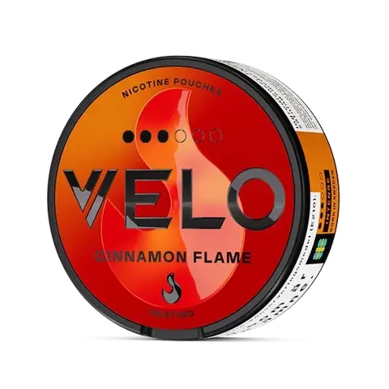 Velo Cinnamon Flame Snus Bold, Spicy Cinnamon Flavor with Extra Strength Velo Cinnamon Flame brings the heat with its bold, spicy cinnamon flavor, delivering an invigorating experience in each pouch. Manufactured by BAT (British American Tobacco), this pro
