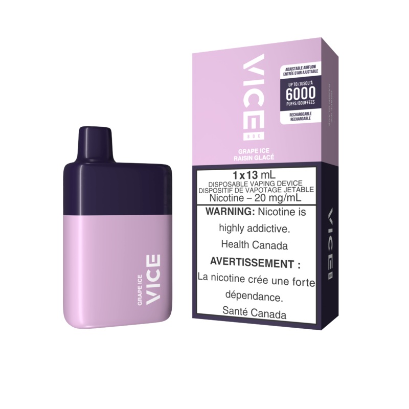 Flavour Profile: – Grape – Ice E-Liquid: – 13mL of 20mg/mL Battery: – 630 mAh USB-C Rechargeable Features: – Battery Indicator – Adjustable Airflow
