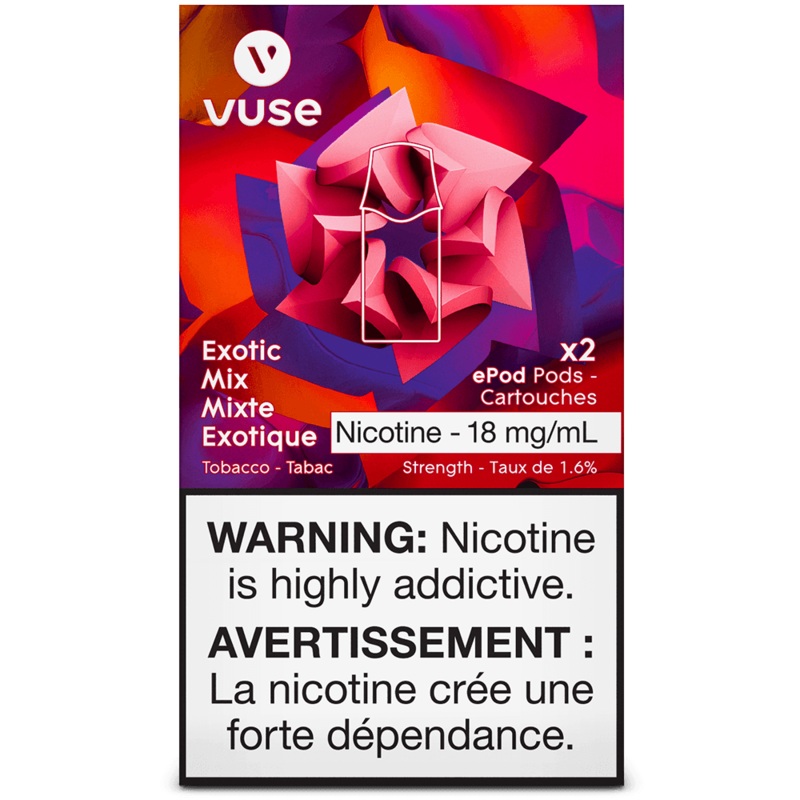 Experience the magic of far-off places with every inhale of the Vuse Exotic Mix. Its distinct flavour, enveloping you in sweet and luscious exotic aromas, is beautifully contrasted by the depth of its subtle roasted nuances. It’s a dance of contrasts, like a sunlit bazaar filled with intoxicating scents. Perfect for those who love a bit of mystery and allure in their vaping escapades, Vuse Exotic Mix offers a delightful and ever-evolving flavour palette to tantalize the senses. Dive in and let the adventure begin!