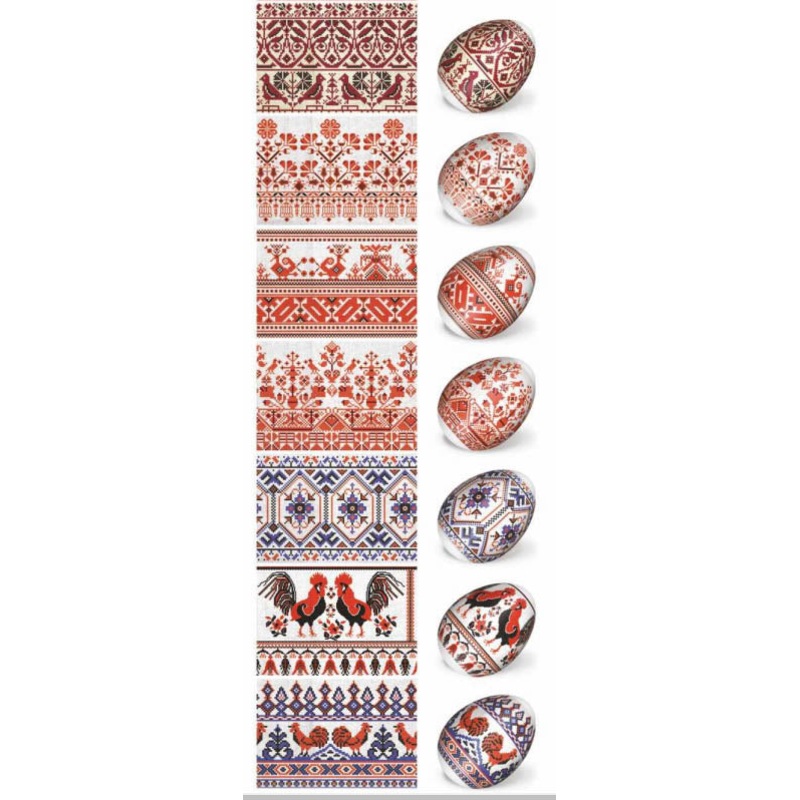 Embroidery design colorful "shrink" films are easy to apply - you just need need boiling water! Eggs are transformed into bright pysanky with intricate designs - instantly! Each strip contains 7 designs (makes 7 eggs). Procedure: cut apart the film with sc