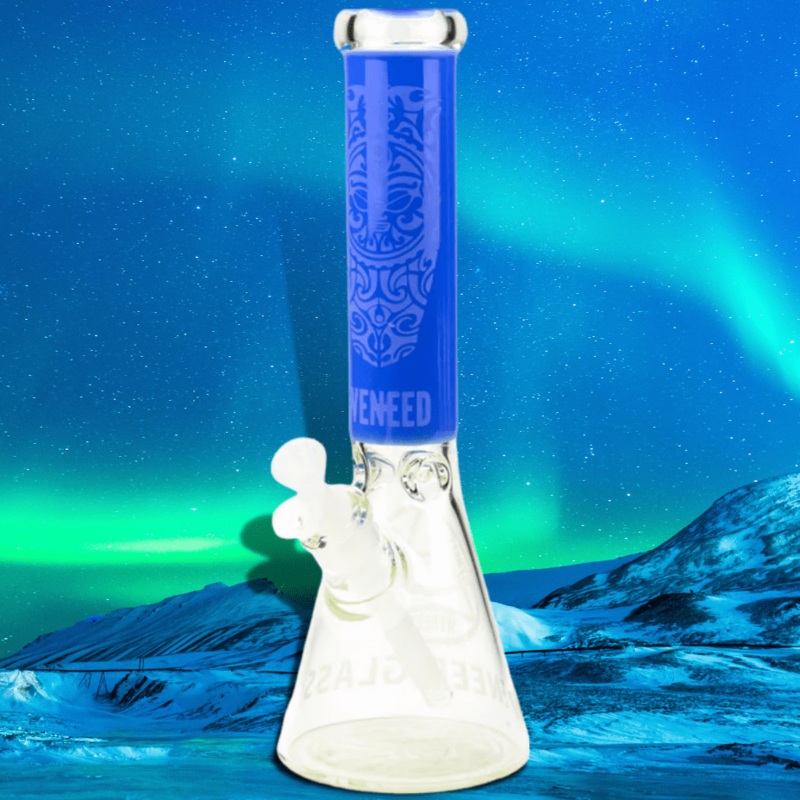 The WENEED 7mm Sun God Beaker 14" is another beautiful piece to add to your collection. Crafted from top quality borosilicate glass, equip with an ice pinch, and featuring gorgeously detailed Sun God sandblast artwork on the tube and the beaker this piece