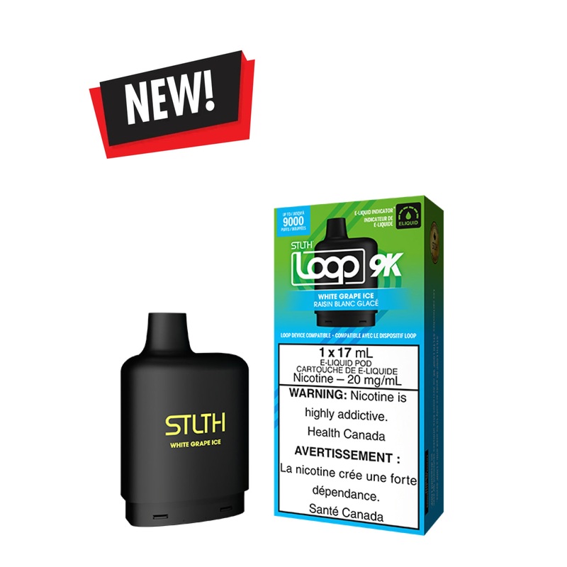 WHITE GRAPE ICE STLTH LOOP 9K PODExperience pure delight as you succumb to irresistible white grapes, enhanced by a refreshing and invigorating ice sensation.______STLTH LOOP 9K - VAPE FORWARDEach carton contains 1 Loop 9K Pod, designed to be used with the
