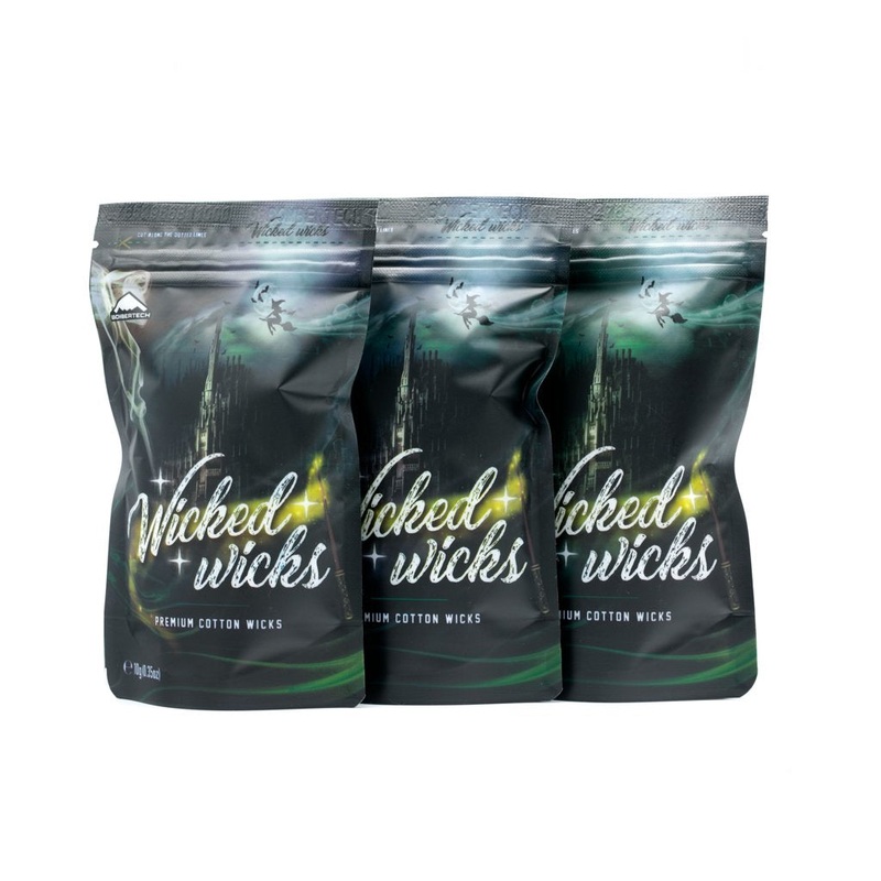 WICKED WICKS COTTON Organic cotton that is selected for vaping by vapers. It has a distinctive soft texture, yet strong and durable so that will not tear apart when wicking. With its fluffy nature, easily form a thick cotton through your coils without brea