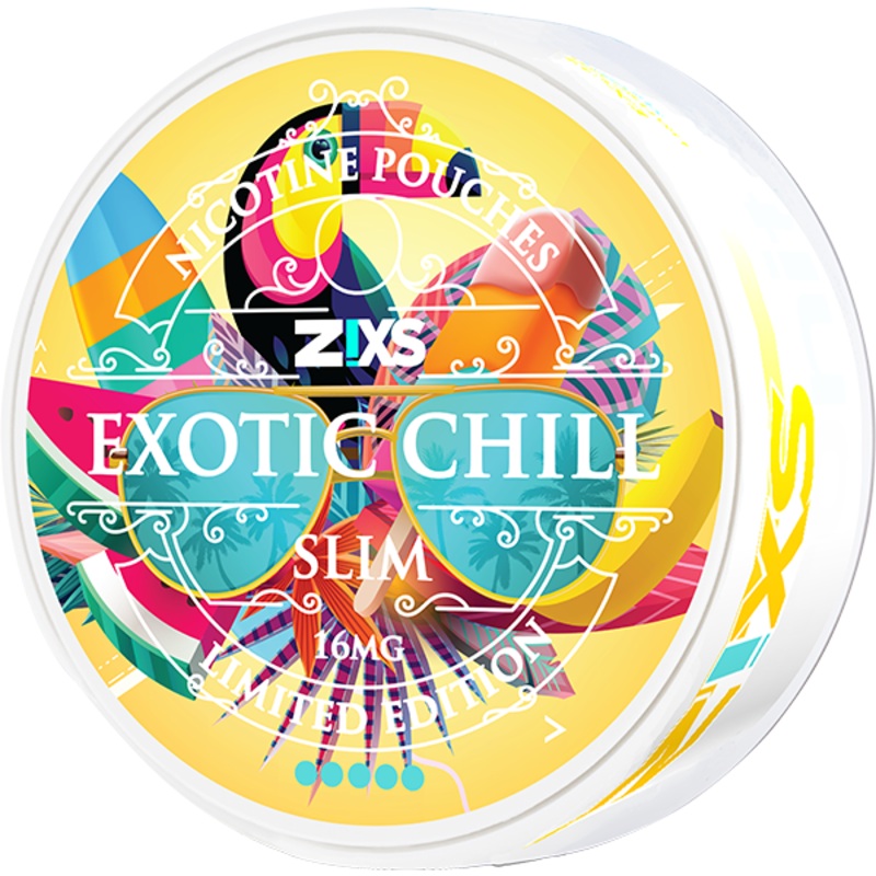 About the product - ZIXS Exotic Chill Slim All-White Portion ZIXS Slim Exotic Chill has a taste of tropical fruits combined with an impressive nicotine strength of 16mg/g.The nicotine pouches come in slim portions for a discreet fit under the lip. Facts ab